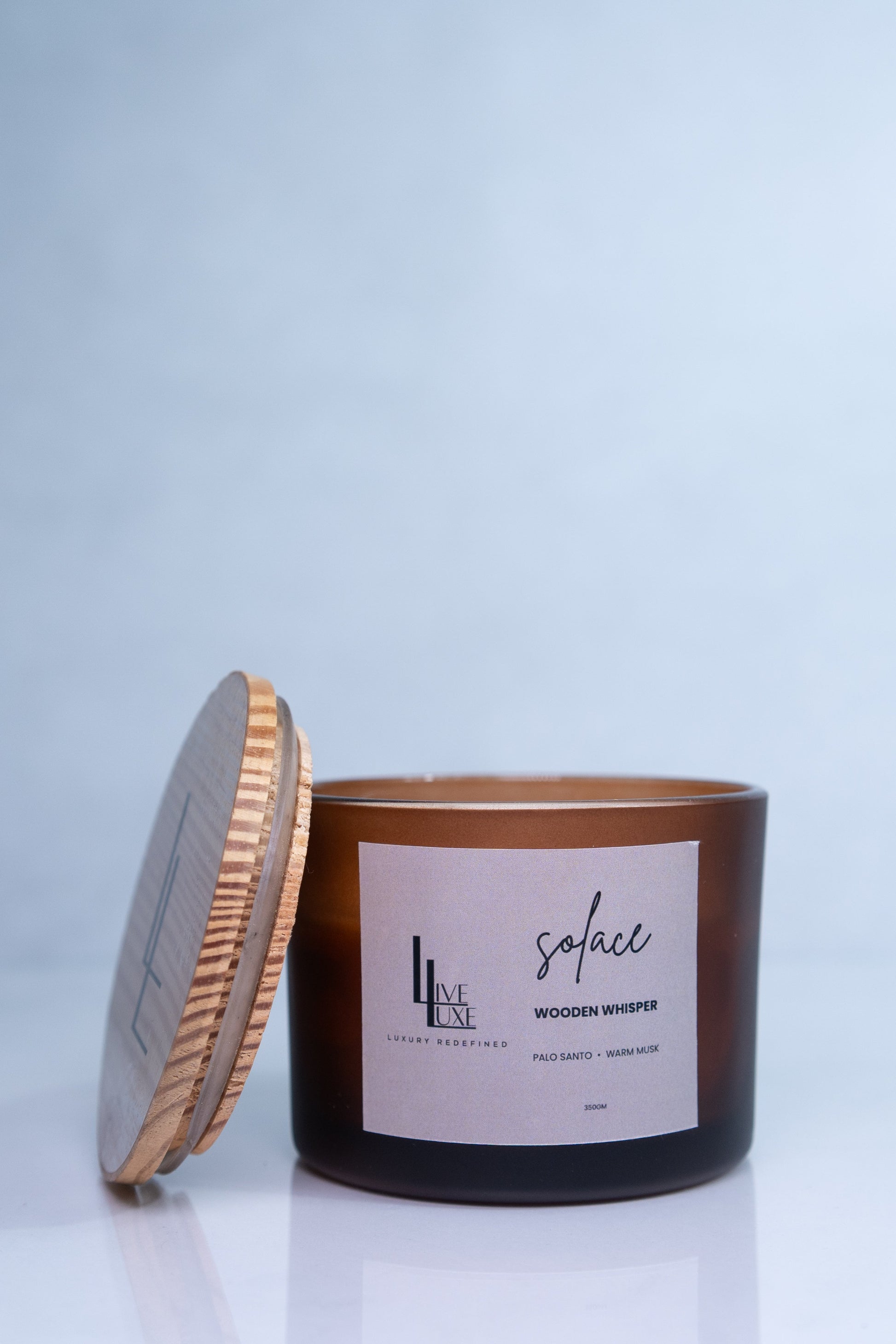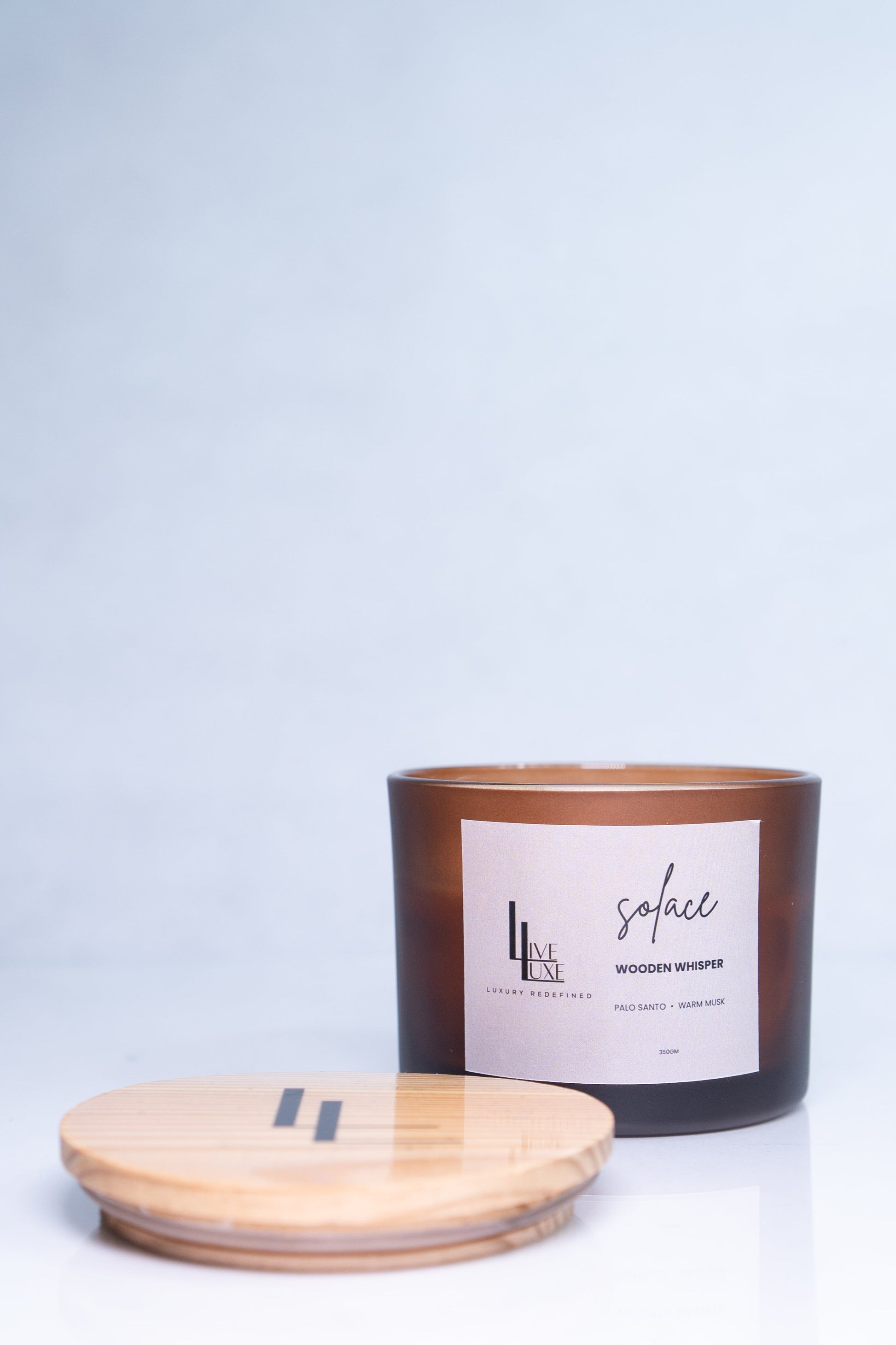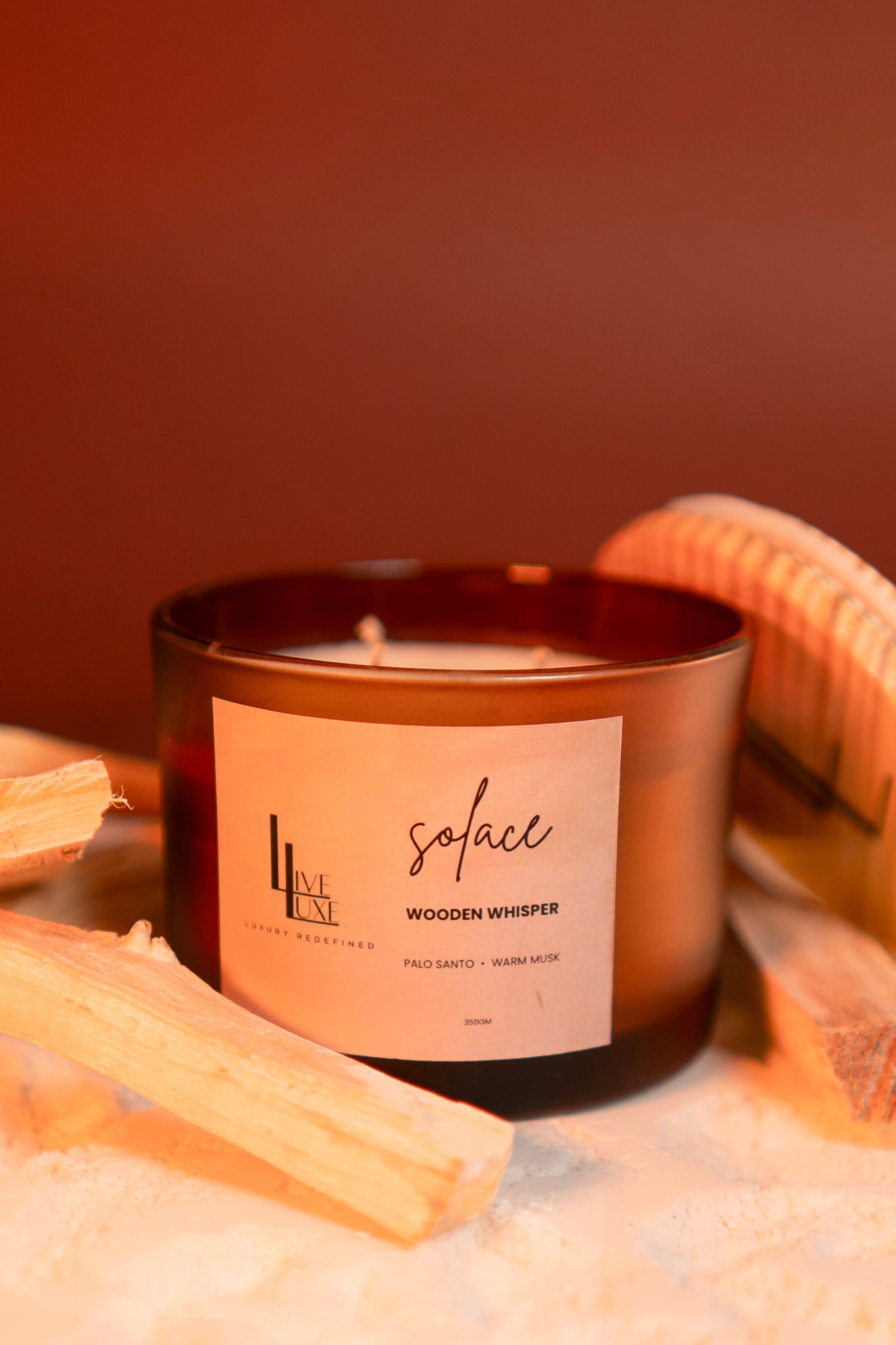 Grounded, smoky and sensuous—Wooden Whisper from our Solace Collection is designed for those who value depth, introspection, and timeless elegance. Infused with the earthy richness of palo santo and the velvety allure of warm musk, this handcrafted candle offers a soul-soothing ambiance and a deep, restorative experience.